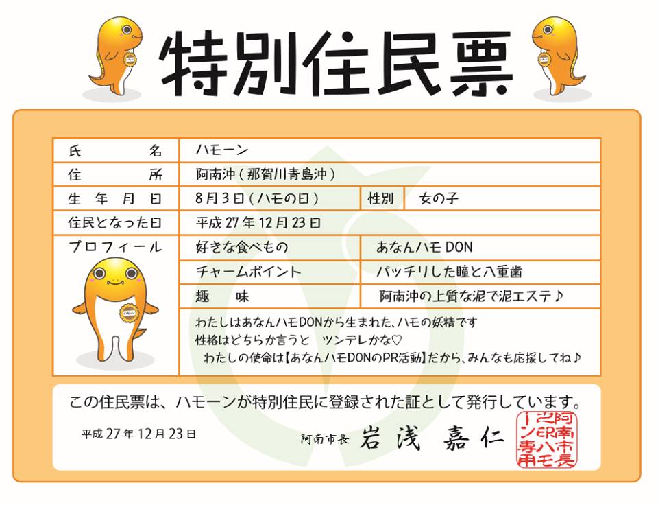 つまり、ハモーンちゃんも阿南市の住民なのです。