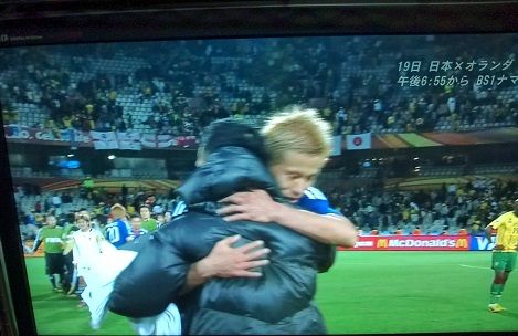 ゴール!! おお~ いつの間にか始まってたワールドカップ 日本の第一戦、初ゴール決まりましたね~ 記念にパチリ おぉ、岡ちゃんが光って撮れた あぁ、アンタ輝いてるよ…